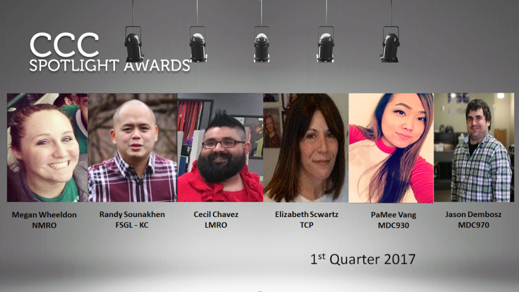 The Customer Care Center has announced their Spotlight Awards for the 1st Quarter of 2017.