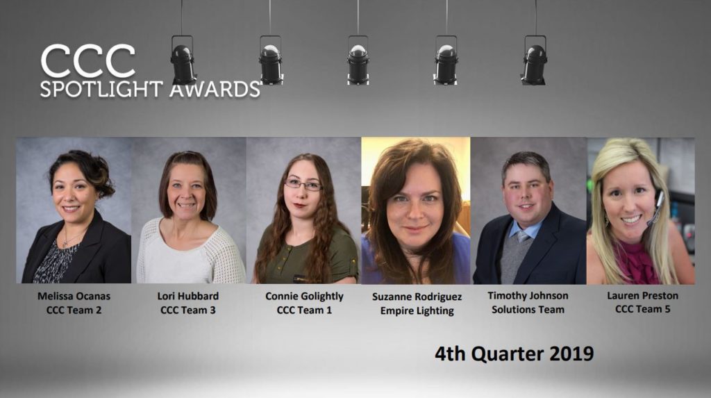 The Customer Care Center (CCC) has announced its Spotlight Awards for the 4th Quarter of 2019. The CCC Spotlight Award is a quarterly recognition program that is voted on by the members of the CCC. The goal of the program is to “shine the spotlight” on those who are doing the most to help the CCC provide…