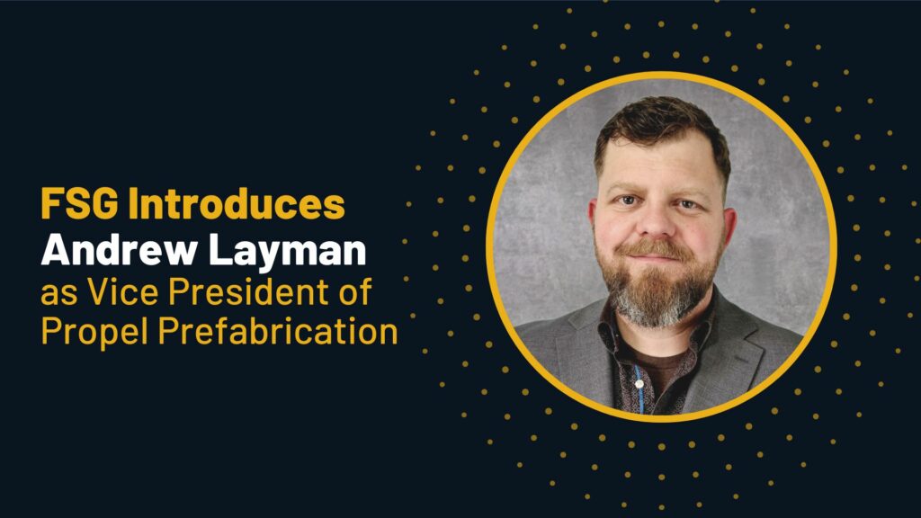 FSG is pleased to announce the addition of Andrew Layman as Vice President of Propel Prefabrication. Andrew will develop and execute the strategic vision for FSG’s prefab organization and build his team on the principles of servant leadership, extreme ownership, and lean ideals in construction.