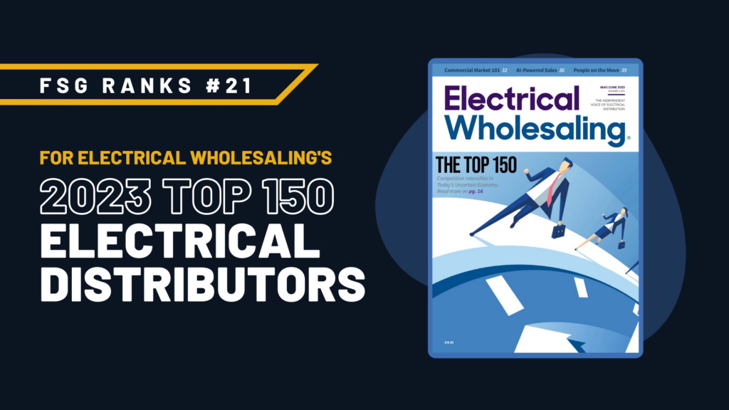 FSG is mentioned in the May/June issue of Electrical Wholesaling Magazine in an article entitled, “2023’s 150 Largest Electrical Distributors”. The article points out that despite a rough three years, the nation’s top electrical distributors have weathered the storms and are posting strong sales figures.