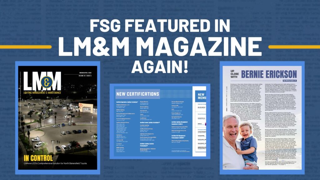 FSG is honored to be featured once again in the International Association of Lighting Management Companies’ magazine, Lighting Management and Maintenance. In the March/April 2024 Issue, LMM spotlighted our Chief Marketing Officer and Director of Innovation, Bernie Erickson.