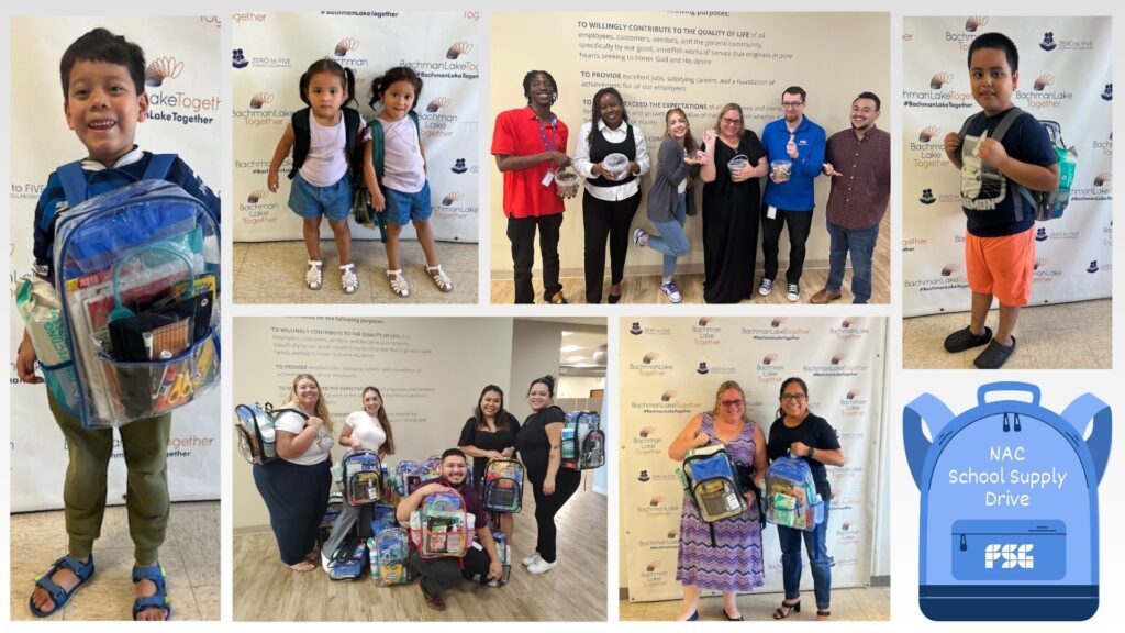 Exemplifying FSG’s ongoing commitment to enhancing the quality of life in our communities, NAC recently partnered with Bachman Lake Together to collect school supplies for children in need. With the rising cost of living, the expense of school supplies can be overwhelming for many families, making this initiative especially impactful.