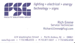 FSGE14 ordered cards for all of our Tech’s and tasked them to keep their eyes and ears open. Rich Emme is an experienced Journeyman electrician, who’s been with FSGE14 for a little over 19 months. He has worked for other contracting companies as well as running his own small business for a while. While at a Bed Bath and Beyond call, he investigated an opportunity with the store manager for FSG to possibly quote work to do some overnights in one of their specialty areas.