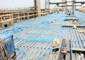 FSG employees Elliseo Cruz and Jose Muniz installed over 5,000ft. of ENT in slab per day for more than 3-months in the blistering summer hear. All this was made possible by prefabrication of all in-slab conduit runs.