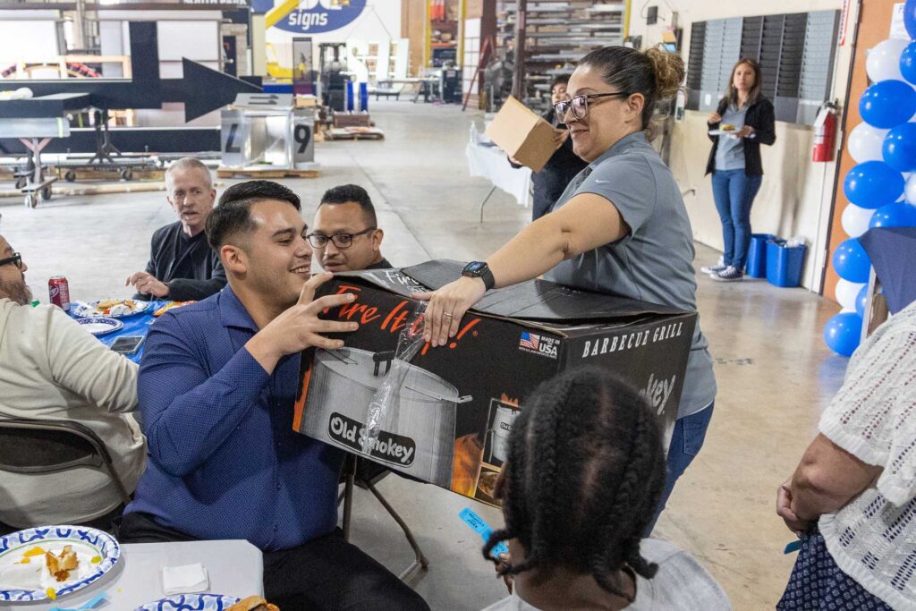 FSG Signs teamed up with FSG’s HR department to host an employee appreciation event last week. Chris Payne manned the grill while Alex Zelaya and Amanda Rogers from HR handed out prizes and laughs. The event was capped off with a message from Bill and a visit from a local ice cream truck!