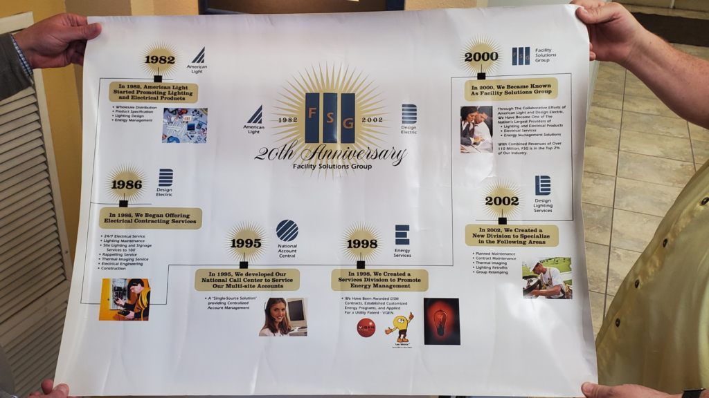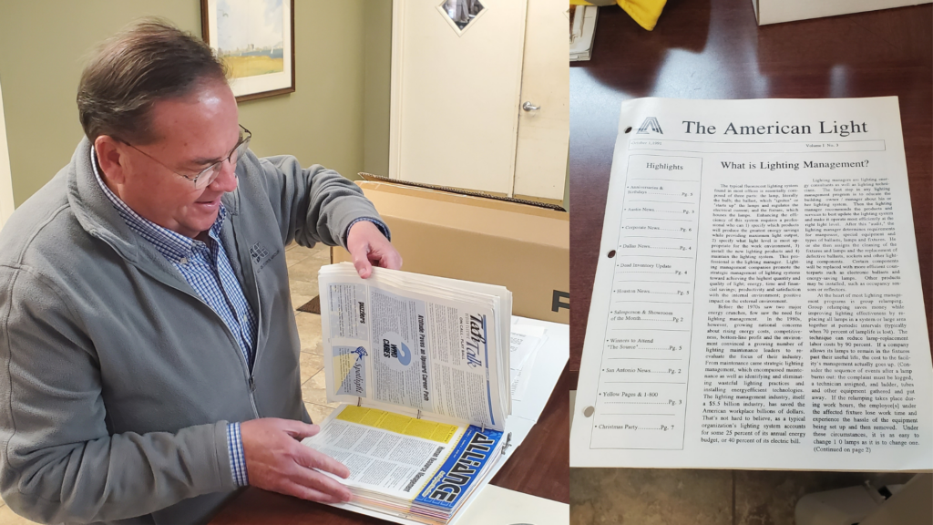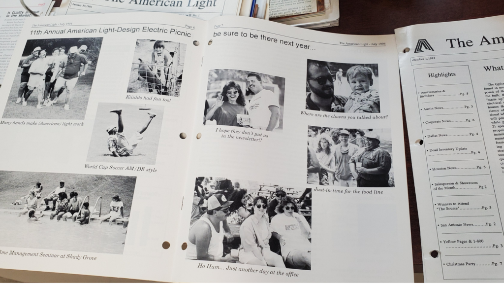 Check out the fun throwback photos from the American Light newsletters with an opening letter from the CEO for each edition, photos from the Christmas parties, company picnics, and the latest industry technologies. Dave Thomas has every newsletter ever printed! He’s an FSG historian and an FSG original, so you will definitely see more of him in the photos this year.