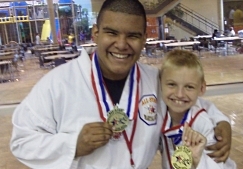 Ryan received a gold medal in patterns and forms and also a silver medal in board breaking for his belt color and age group. Bobby, also received a gold metal in patterns and forms, board breaking & best all around trophy for his belt color & age group!