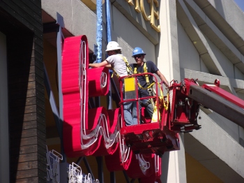 Recently FSG was contracted to install several new signs for Bayou Place, a 130,000 square foot entertainment complex that houses multiple theatres, bars and restaurants located in downtown. Technicians Frankie Moreno, Robert “Gumby” Natusch, Mario Gandara and Fred Bazan installed numerous signs for Live! at Bayou Place located on the second level of Bayou Place for world-class establishments including PBR Houston, Lucie’s Liquors, Shark Bar and Chapel Spirits.