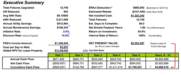 Understanding the systems inventory for one retailer lead to the discovery of 12,740 fixtures that are affected by the DOE regulation. When we ran the analytics against LED fixtures the benefit is astonishing.