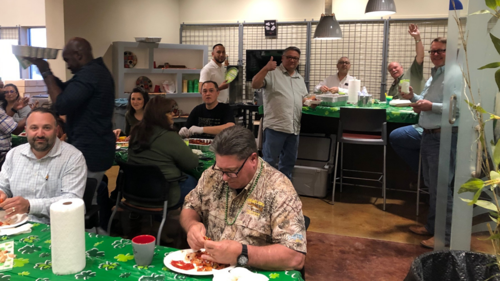 FSG San Antonio commemorated the spring season with camaraderie and crawfish in the name of Saint Patrick on Thursday, March 17th. The celebration was complete with crawfish, shrimp, sausage, and potatoes, all prepared by Paul Lee and Chris Baker with a nice pairing of green beverages, dyed beer and margaritas!