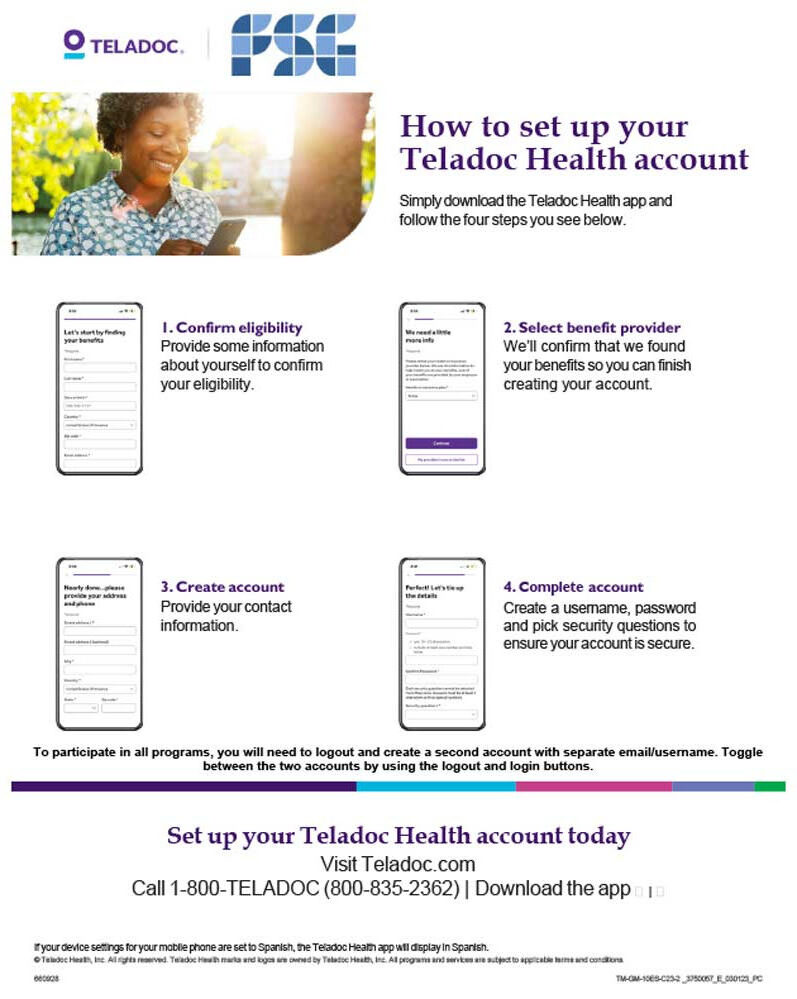 FSG is proud to provide all of our employees and their dependents with FREE Teledoc Health benefits. This includes Unlimited, 24/7 General Medical and Mental Health calls. You DO NOT need to be enrolled in any of our FSG-offered health plans to take advantage of this benefit, it is for ALL FSG employees and their dependents!