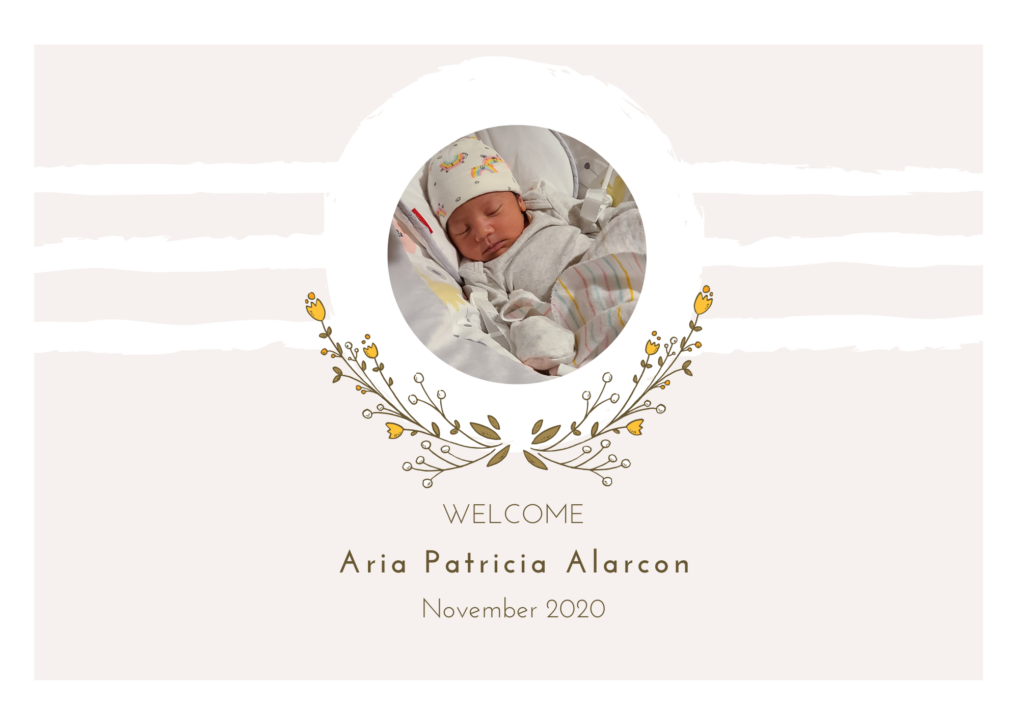 Aria Patricia was born in early November in Fountain Valley, California to Arthur and Patricia Alarcon.