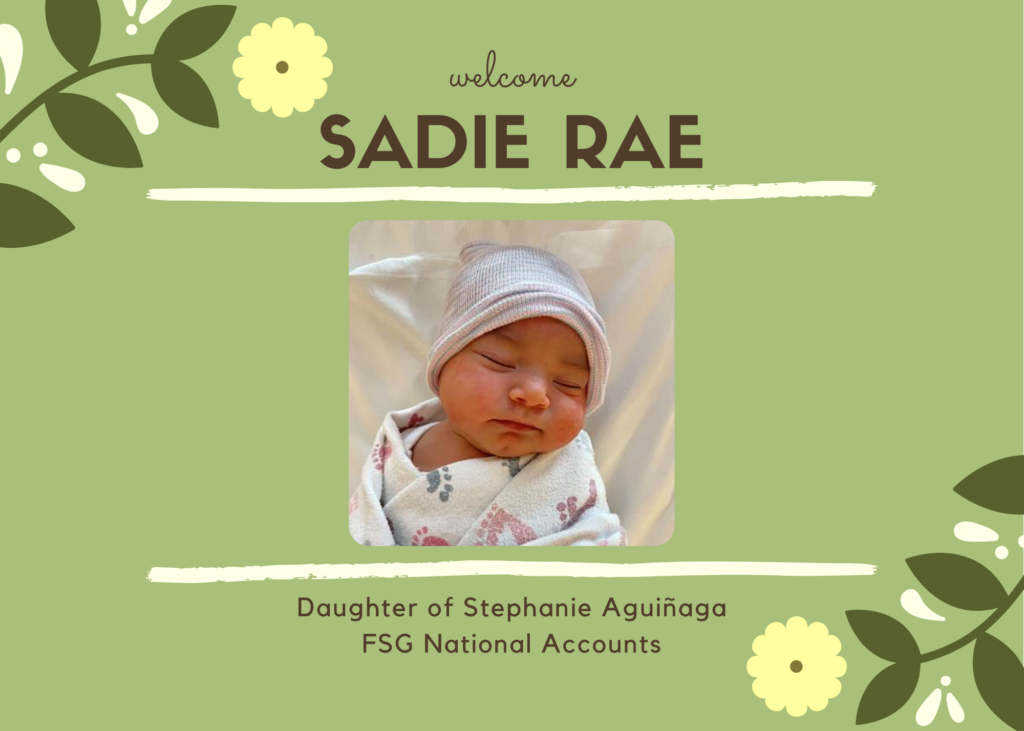 Stephanie Aguiñaga of FSG National Accounts welcomed baby Sadie Rae earlier this month.